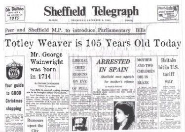 The following memoir has been written by a descendant of the venerable subject to whom it alludes, and who, on the 28th of this month will have completed his 105th year. It has been usual of late for several gentlemen of Sheffield to raise a subscription for the purpose of providing a dinner, on the occasion of George Wainwright's birth, who with the whole of his descendants are regularly invited. It is a peculiarly gratifying occasion to the modern Patriarch, , who never fails to betray a very proper share of feeling and becoming satisfaction, that is witnessed with much pleasure by his friends, and regarded for its sincerity by his acquaintance and benefactors.