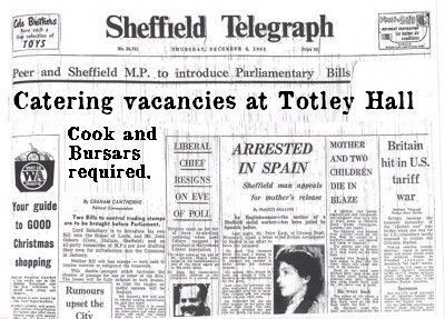 Letters of application with two testimonials and names of two referees to be sent to the Principal at the College, Totley Sheffield.