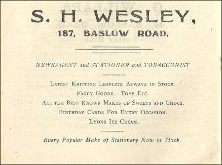 Other people remember the newsagents shop fondly like Robert H. Carr in the November 1997 issue: "Certain shops stand out in the memory, Wesley's on Baslow Road with their halfpenny and penny trays (containing liquorice and sherbet etc.) each item priced accordingly. There was also a twopenny tray. You were really in the money if you could afford that one!"