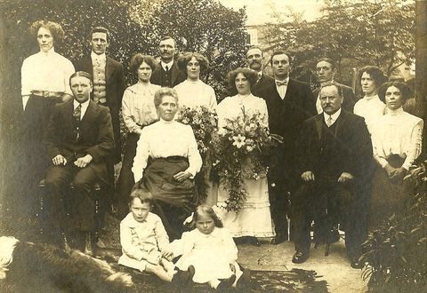 On 29 May 1912 Fred and Emma were married at St Paul's Church in Norton. Benjamin and Alice were living at Toft House by this time and Fred and Emma's wedding party were photographed in the orchard there. The couple set up home at Moorview on Butts Hill.