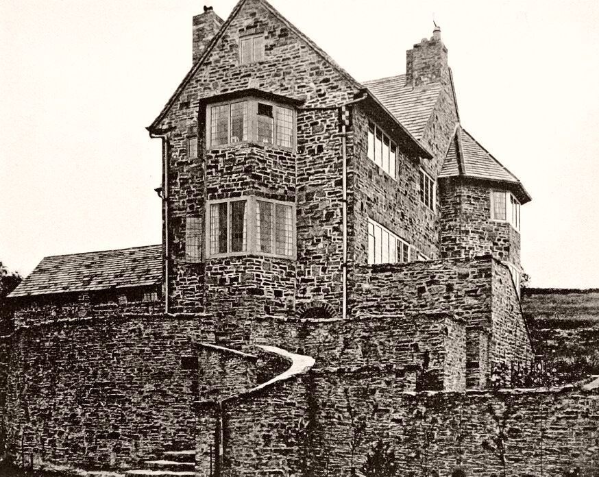 The house was built in 1904 in the Arts and Crafts style to designs by Edgar Wood (1860-1935) for the Rev. William Blackshaw, a Congregationalist Minister with the Croft House Settlement. Mr Dyson was the builder and joiner, and Mr Manders was the mason, both of Sheffield. The house cost in the order of £1,600.