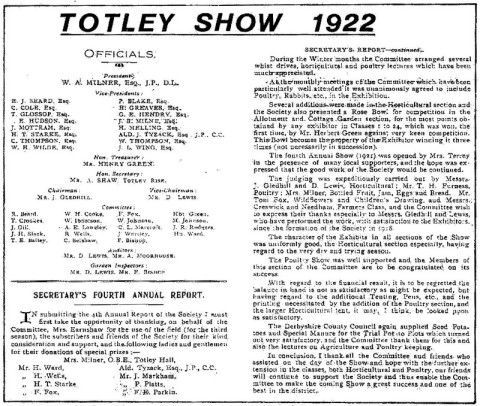 We have been lent copies of Schedules and Catalogues relating to the Annual Shows of the Totley Allotment and Horticultural Society in 1921 and 1922 - the 4th and 5th shows. They are fascinating.