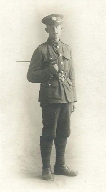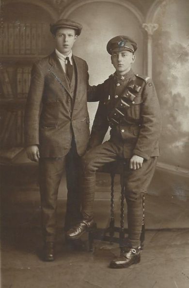 The soldier in the full-length study was, undoubtedly, a member of the British Infantry - The Leicestershire Regiment. The large 'Royal' tiger which formed the centre of that Regiments badge is quite plain to see for those of us familiar with such adornments. He carries a 'swagger' stick under his right arm - 'a bit of show' which, prior to WW2, soldiers added to their dress when 'walking out,' (maybe to impress the ladies - although they'd maybe need to try a bit harder than that nowadays!).