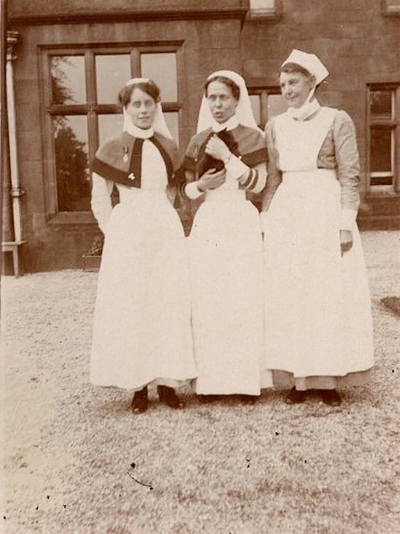 Matron, centre, and nurses, Longshaw Lodge Convalescent Home for Wounded Soldiers