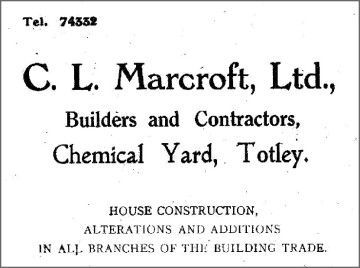 I was born at 258 Firth Park Road on 24th of May 1920, and the family moved to Totley when I was a baby in the early 1920s. By that time my father had built a bungalow at 14 The Quadrant, where we lived. He also built most of Heatherfield during the next few years. My mother’s parents lived at 18 The Quadrant. My father, who traded as C. L. Marcroft Ltd, developed three roads off The Quadrant and Terry Road. Father also bought land from Colin Thomson, a butcher on Totley Rise. At the time he had financial help from the solicitors Hyman Stone (he dealt with a Mr Greenway) and presumably that is how they arrived at the names Marstone Crescent and Stonecroft Road.