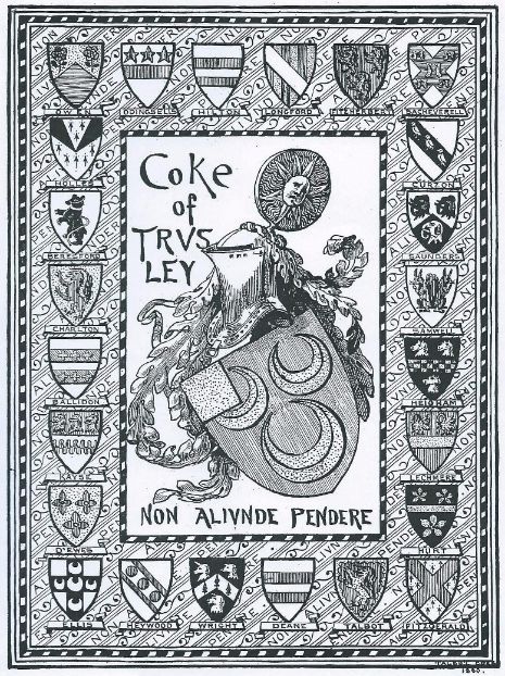 These owners of the Totley Estate were from Pinxton near Alfreton in Nottinghamshire. However they had an early connection with Totley. According to notes on Totley Hall in The Old Halls, Manors and Families of Derbyshire a deed dated 1402 shows that the Manor of Totley had been in the hands of the Milnes of Ashlockton in Nottinghamshire, who were related to the Cokes of Trusley. Four hundred years later descendants from a branch of this family came back to Totley. (See family tree and Coke of Trusley arms.)