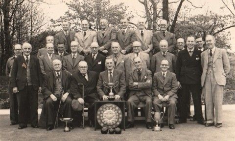 Cross Scythes Bowling Club; Maurice Johnson second from the right, front row, holding cap.