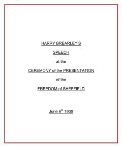 And now I should like to thank you my Lord Mayor, and the Aldermen and Councillors and the people of Sheffield whom you represent, for the Honour you have conferred on me. These are feeble words, but if I had the tongue of men and of angels, and I could speak jewelled words fit for a King's Ransom, they would mean, when all was said, what I mean when I say, “Thank you”.