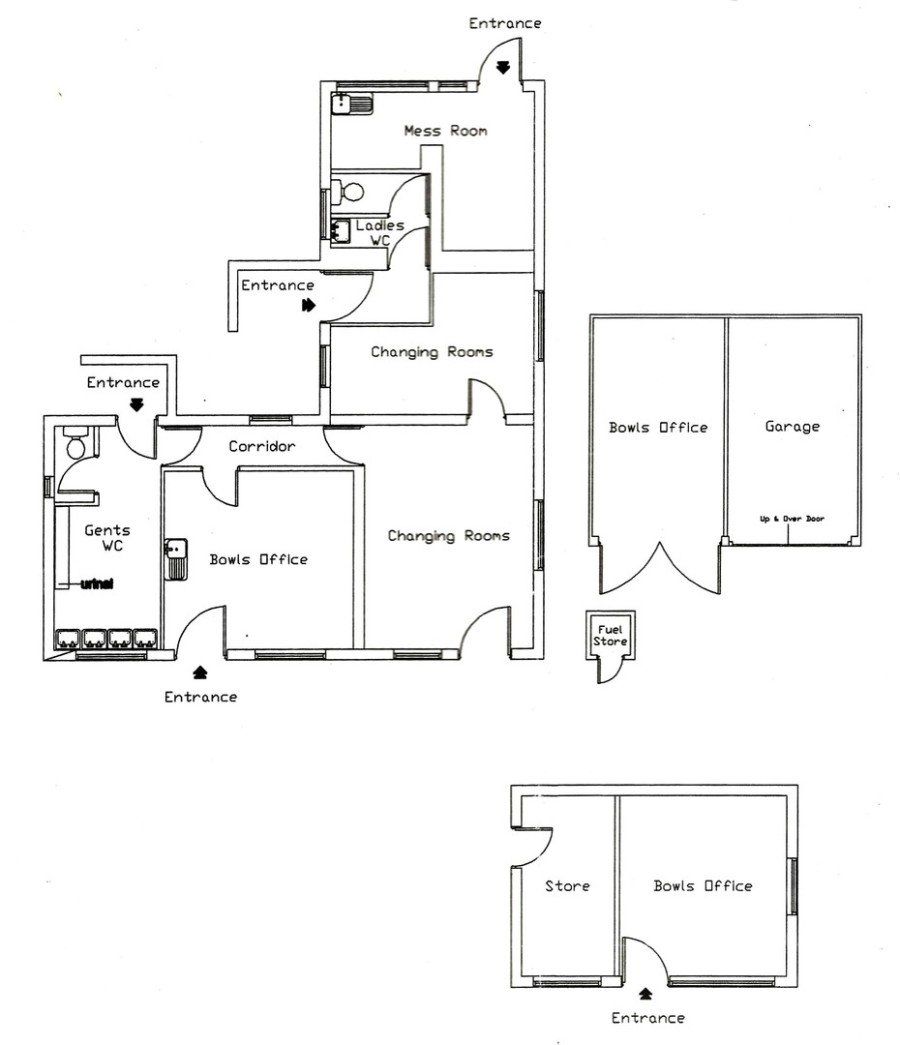 The simple answer to Maya's question is that the buildings were used by the members of the Green Oak Bowling Club. We have some floor plans which show us what they were used for. The main building had ladies' and gentlemen's changing rooms and toilets, an office and a "mess room" with a kitchen sink, where drinks would be made and food prepared. The smaller building was used as an office and a store for equipment. It would have had filing cabinets to keep club records and accounts. There was also a third building which was used partly as an office and storeroom and partly as a garage. No doubt they kept their mowing machine and other gardening equipment in there. That has now been demolished.