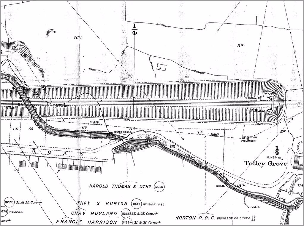 ... A letter was read from Mr. W. Terrey, general manager of the Sheffield Corporation Water Department, stating that he found that the guarantee required to extend the mains necessary to supply the houses on the Totley Brook estate with water would be £20 per annum; that he had had a valuation made of the properties in Totley Brook and Grove Roads, and ascertained that if the owners of property agreed to have the water laid on the annual revenue derived therefrom would be £46 8s. 3d., which would more than meet the necessary guarantee. Dr. Gale again pointed out the danger that might arise from drinking the present supply of water. There was, he said, no supply in their district where there was greater danger of contamination. The brook received sewerage from houses, and in summer time, when enteric fever was very prevalent, and when the water was low, if an outbreak of fever was to occur, it would give rise to a great outcry....