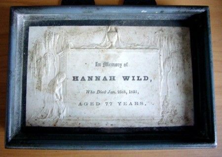 Further research on Hannah Wild has produced more biographical information. Her death certificate tells us that she was the widow of Thomas Wild, millwright, and that she died of bronchitis. At the time of her death she had been living at Pingle Head, Ecclesall Bierlow with her daughter and son-in-law, Jane and Thomas Fisher.