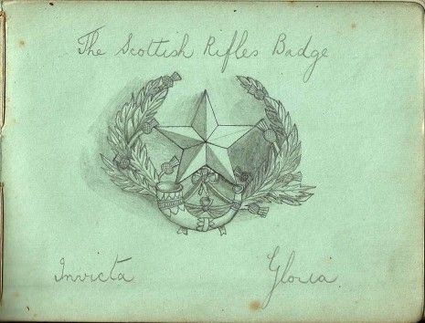 Recently I decided I should look into who they belonged to. One of them is inscribed at the front: Pte. H. Starke, a present from Mrs Lamb, Commandant, Hayton House Hospital, Xmas 1916. The book includes a message from his father and from people who may have been staff or other patients of the hospital, and includes a beautifully executed drawing of the badge of his regiment, the Scottish Rifles.