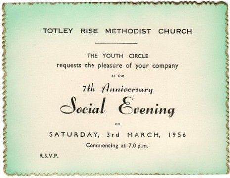 Totley Rise Methodist Church Youth Club was a social meeting place for many teenagers in the 1950s. It was founded by Philip Schofield (known as "Schoey") in 1949 when he and his wife moved to Totley. The group met every Thursday evening for a get together where they listened to music and socialized. The club provided an alternative place for teenagers aged 13-18 to hang out where previously there had been none. The group was part of a national organization, the Methodist Association of Youth Clubs (MAYC). Young people came to the club from many surrounding areas, definitely not just members of the church. Even many of the teddy boys who used to hang out at Gratton's at the top of Totley Rise would drop in, attracted by the music and no doubt by the college girls who used to attend from Totley Hall College (then known as Totley College of Housecraft or Domestic Science college).