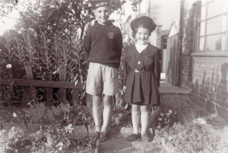 John is wearing the uniform of the "Life Boys" (young boys' group affiliated with the Boys' Brigade). Margaret is wearing the uniform of a "Life Girl" ( young girls' group with the Girls' Life Brigade). Both groups were held at the Totley Rise Methodist Church. John later used to play the bass drum in the marching band of the Boys' Brigade when he was a young teenager. I remember they used to start playing at the top of Totley Rise by Gratton's and marched down the length of the Rise (which was still then the main Baslow Road) into the car park at the front of the church. I guess there wasn't much traffic in those days!