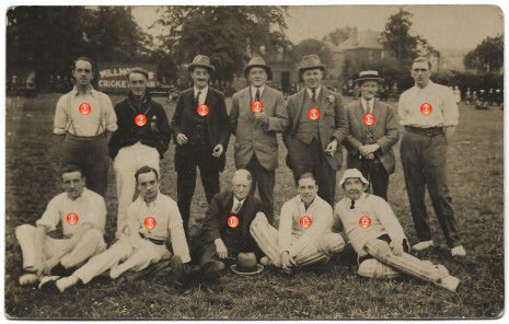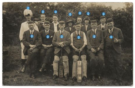 Photograph 1 appears to be of the batting team and photograph 2 one of the bowling team. We have annotated the photos with reference numbers and Cecil Inman has been given number 3. To aid identification, please click on the photographs to enlarge them.