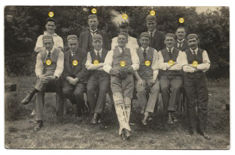 The other two photographs appear to show a match between two teams of "Old Boys". Such matches were popular from about 1907, with players sporting top hats, straw boaters or other fancy headgear and held in aid of former players who had fallen upon hard times. Photograph 3 appears to be of the batting team and photograph 4 of the bowling team. We have given Cecil the number 28.