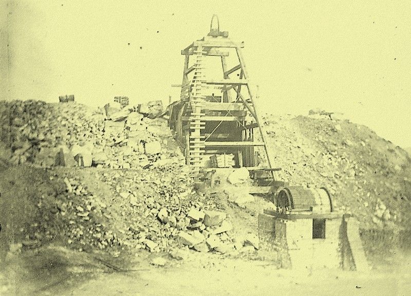 Probably No. 5 shaft workings; the huts housed the winding gear and was probably used by the navvies to live in.