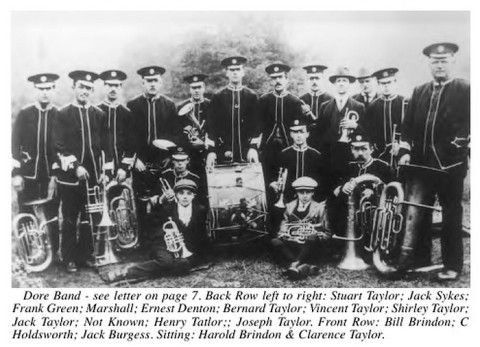 The Dore Brass Band used the club for practice. Their conductor was Shirley Taylor and his seven sons all played in the band. This photo of the band comes from Dore to Door issue 79.