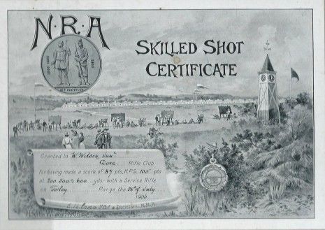 This certificate was awarded to William Wilson Junior of Dore for his performance at Totley Rifle Range on 25 July 1906.