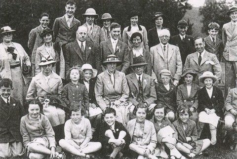Gillfield Wood was also a place of romance. At the age of sixteen Marjorie, the only daughter of the Milners, became fond of William Wilson, who, in 1900, became Master of Barlow Hounds. Her parents had greater ambitions for their daughter as well as not approving of the relationship as she was so young. The couple flouted parental disapproval and met secretly in Gillfield Wood whenever they could. Eventually in 1909 Mr Milner gave consent to their marriage, and after a big celebration the couple set up home in Horsleygate. The photograph below shows William and Marjorie Wilson, seated centre, about 30 years later.