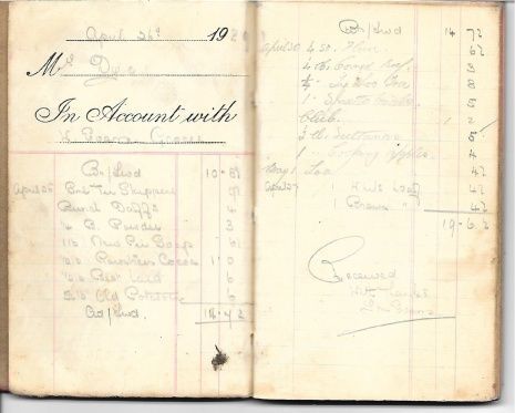 Whilst sorting through some of his late father's possessions, Craig Newbould came across an old grocery account book which must have belonged to a previous owner of the house at Summerville, 21 The Quadrant, Totley.