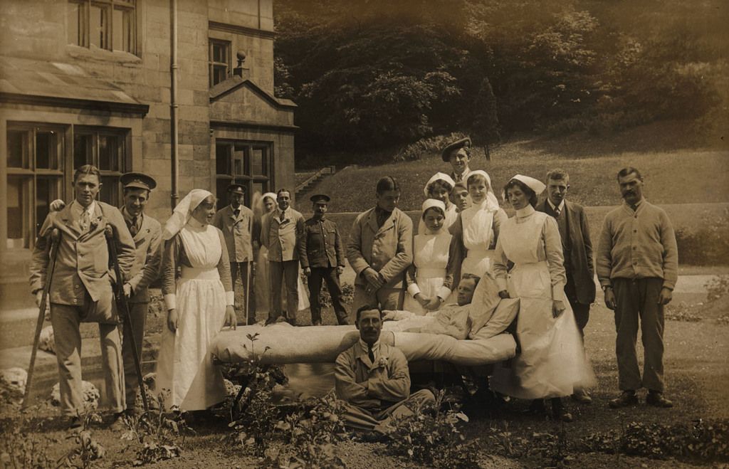 A Group Portrait of Wounded Soldiers and War Time Nurses, Longshaw Lodge Convalescent Home for Wounded Soldiers, June 1917, (c) Tyne & Wear Archives & Museums